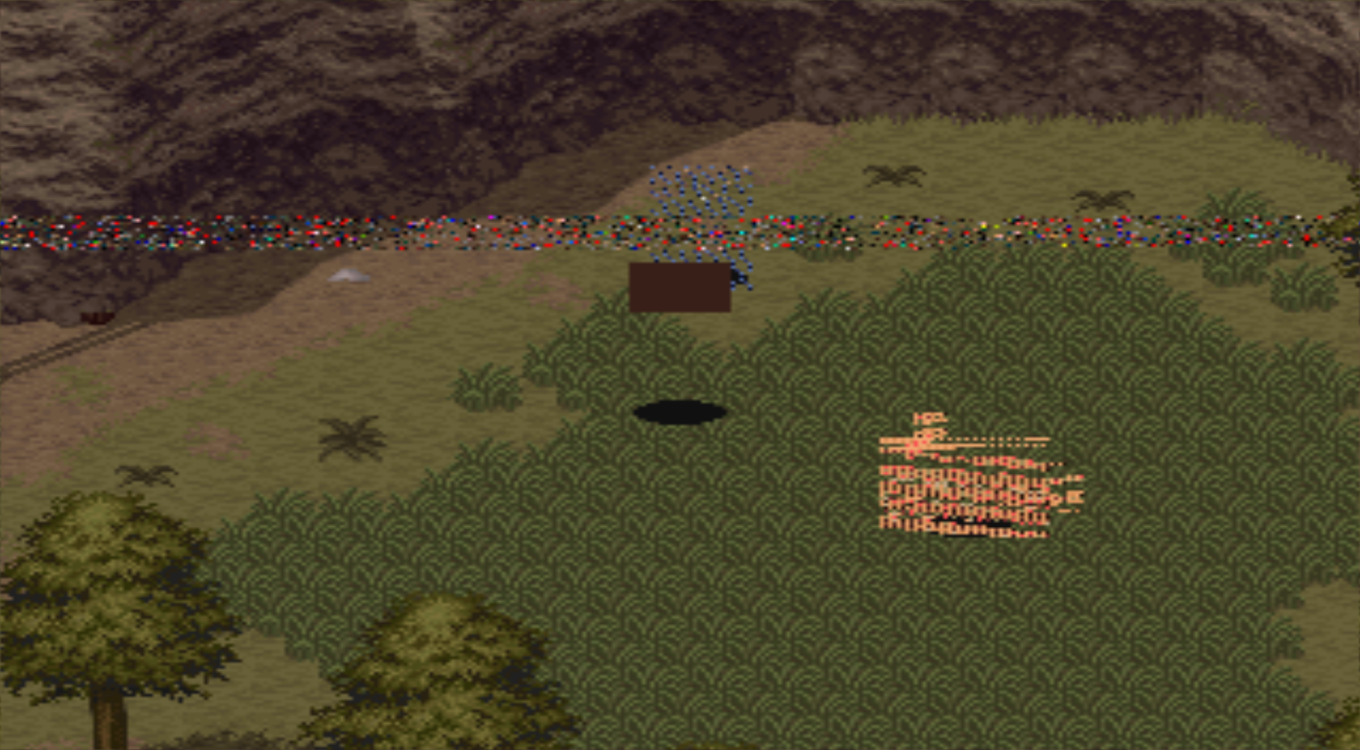 Ce jeu semble sympathique, je ne le connaissais pas. Vous démarrez depuis un village. Je sors de ma maison puis je me dirige vers l'est et là dans ce même village je croise une nana aux prises avec un gros cochon ( un vrai de vrai pas un humain  ;)). La le porc m'attaque et un premier combat se lance déjà. Au cours du lancement mon pixel et celui du porc ne ressemblent plus à rien et tout devient noir avec un son continu m'indiquant clairement que l'émulateur est planté. Je ferme l'émulateur par ctrl+alt+enter pas le choix.